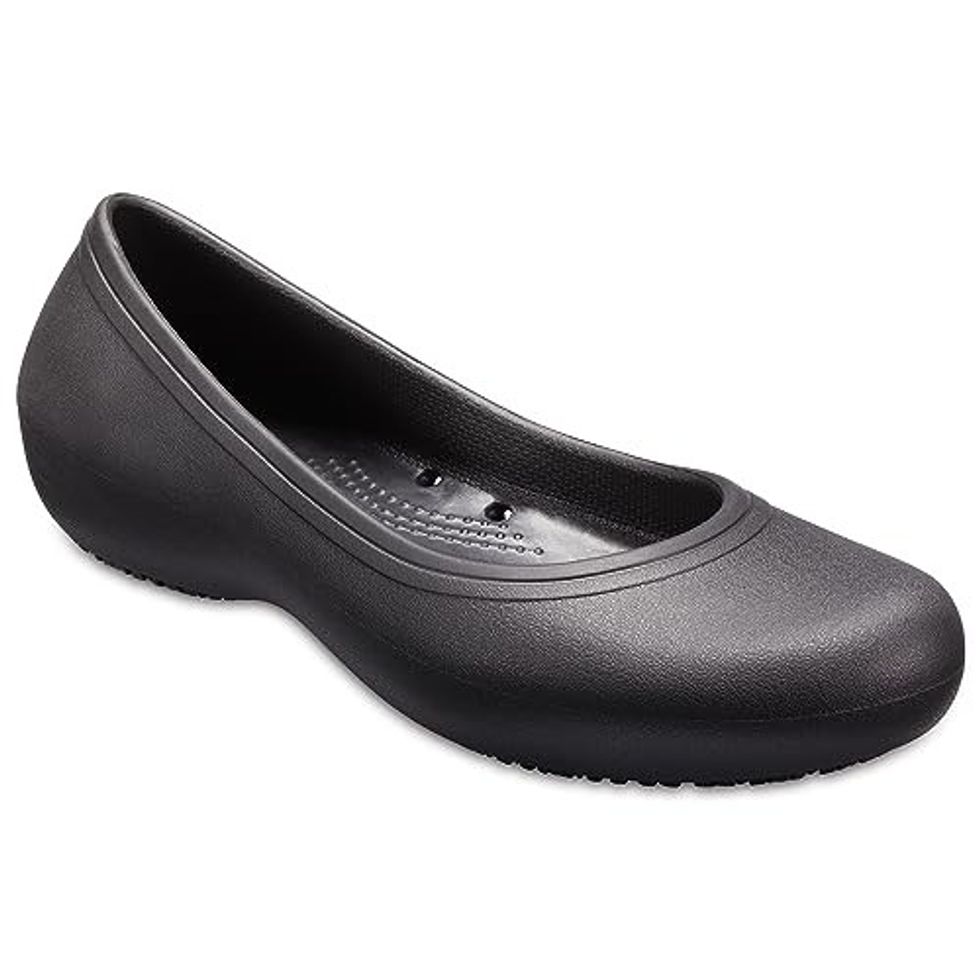 Move around with comfort in the flat Crocs that are plain, so they can be worn with anything and give you the cushioning you need in all the right places of your feet. Wear them for work or play.