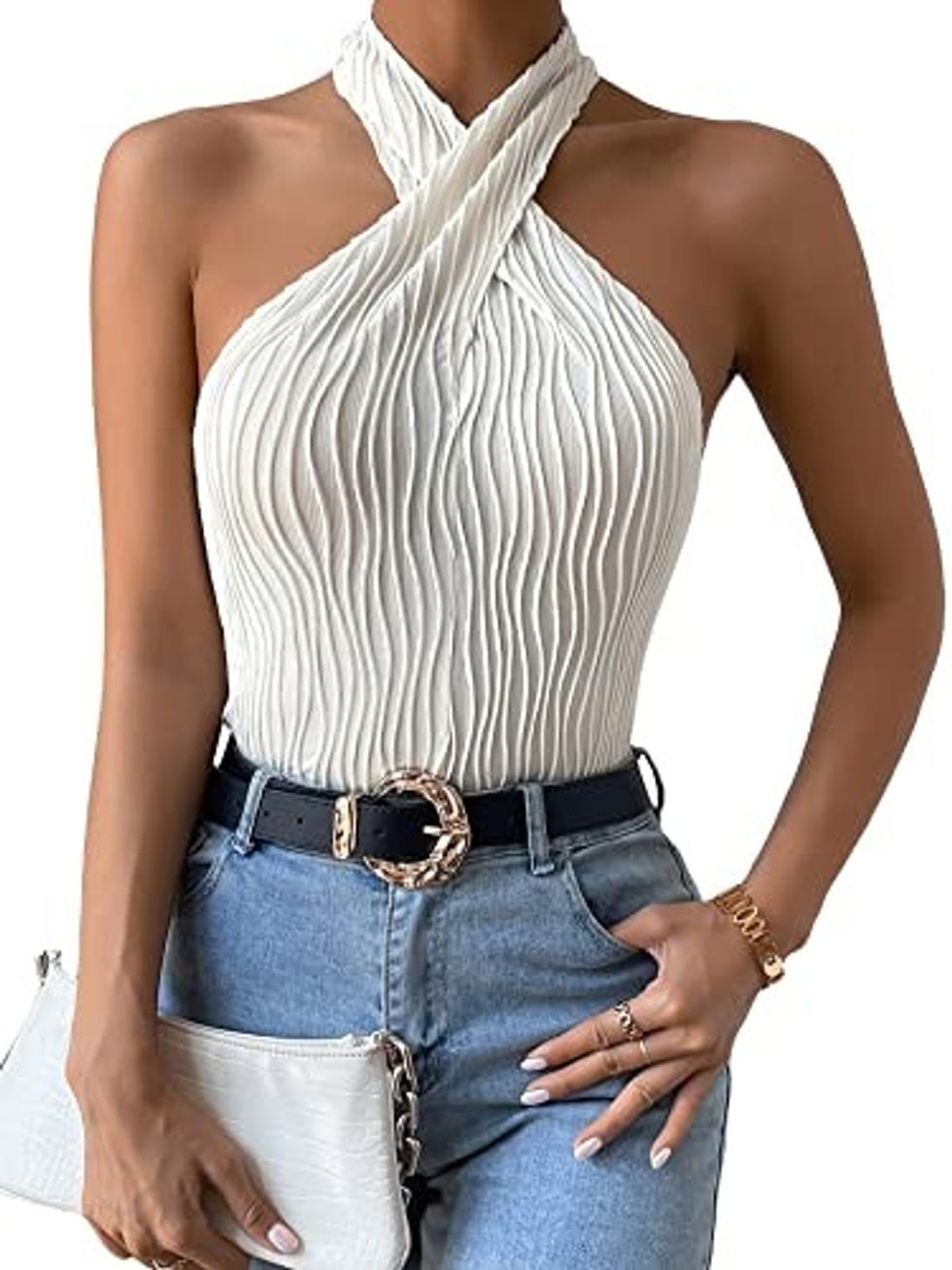 With their high neck design, tight fit and slimming look, halter tops are always a reliable and stunning look to go for. This Halter Top is another go-to with its criss cross design, ribbed fabric and a stretchy fit that gives you a mix of comfortable and chic all at the same time. This top has a ton of colors to choose from too.
