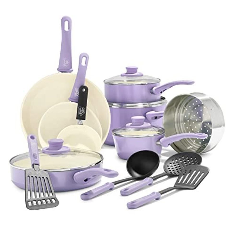As long as purple is taking over your wardrobe, you might as well bring it into your kitchen too! This 16-piece lavender cookware set will have you actually looking forward to making dinner at home. The easy-to-clean nonstick ceramic makes them last forever, and the fact that they're made from recycled aluminum means you can feel good about buying them.
