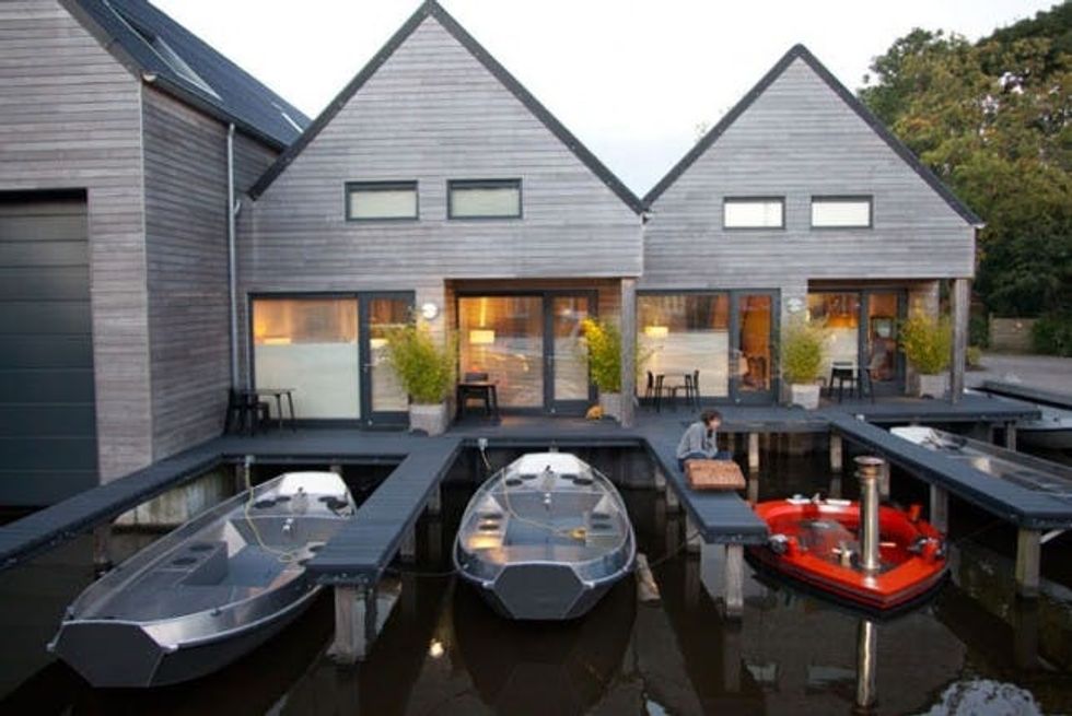 Finally, how much does it cost? To get the full package with an integrated electric motor, batteries, charger, and wood burning heat, you’re looking at around $22K. If you’ve got a wood burning heater (wait, you do?) and an outboard engine, you can snag just the glass fiber shell for around $12K. Dock it just like any other boat!