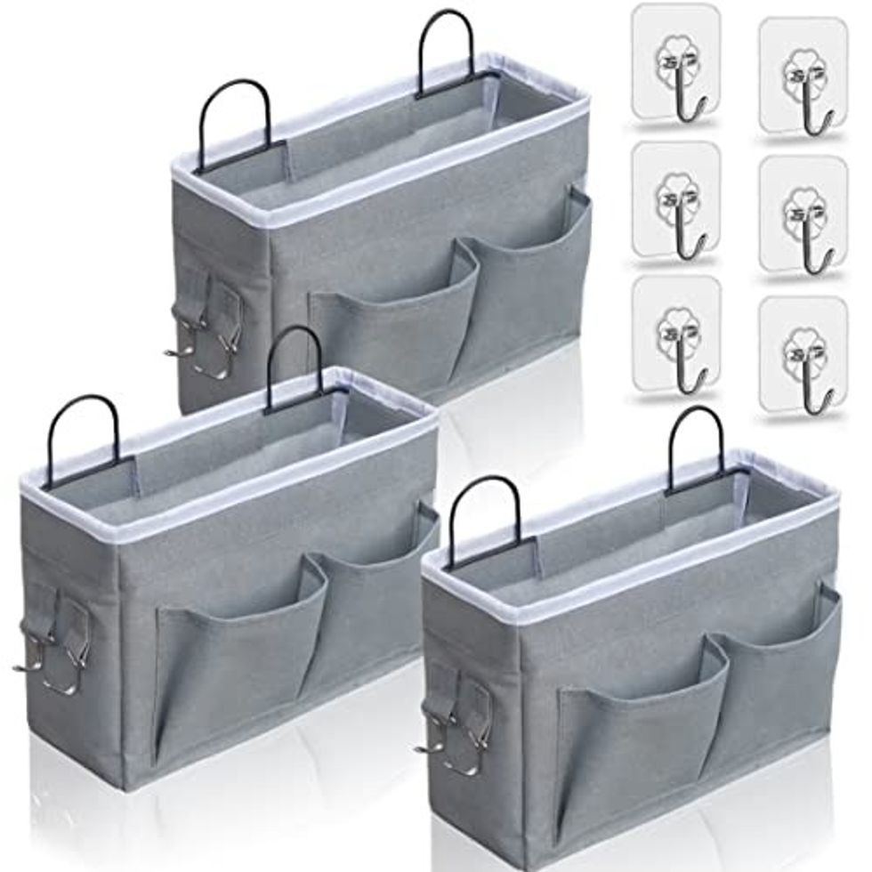 Any place you need a little extra storage and organization is the perfect place for a Hanging Organizer Bag. The Bags feature metal hanging loops, 2 front pockets, 2 hooks on the left side, and a mesh pocket on the right side. The Storage Baskets are offered in sets of 2 or 3, and the hooks are included.