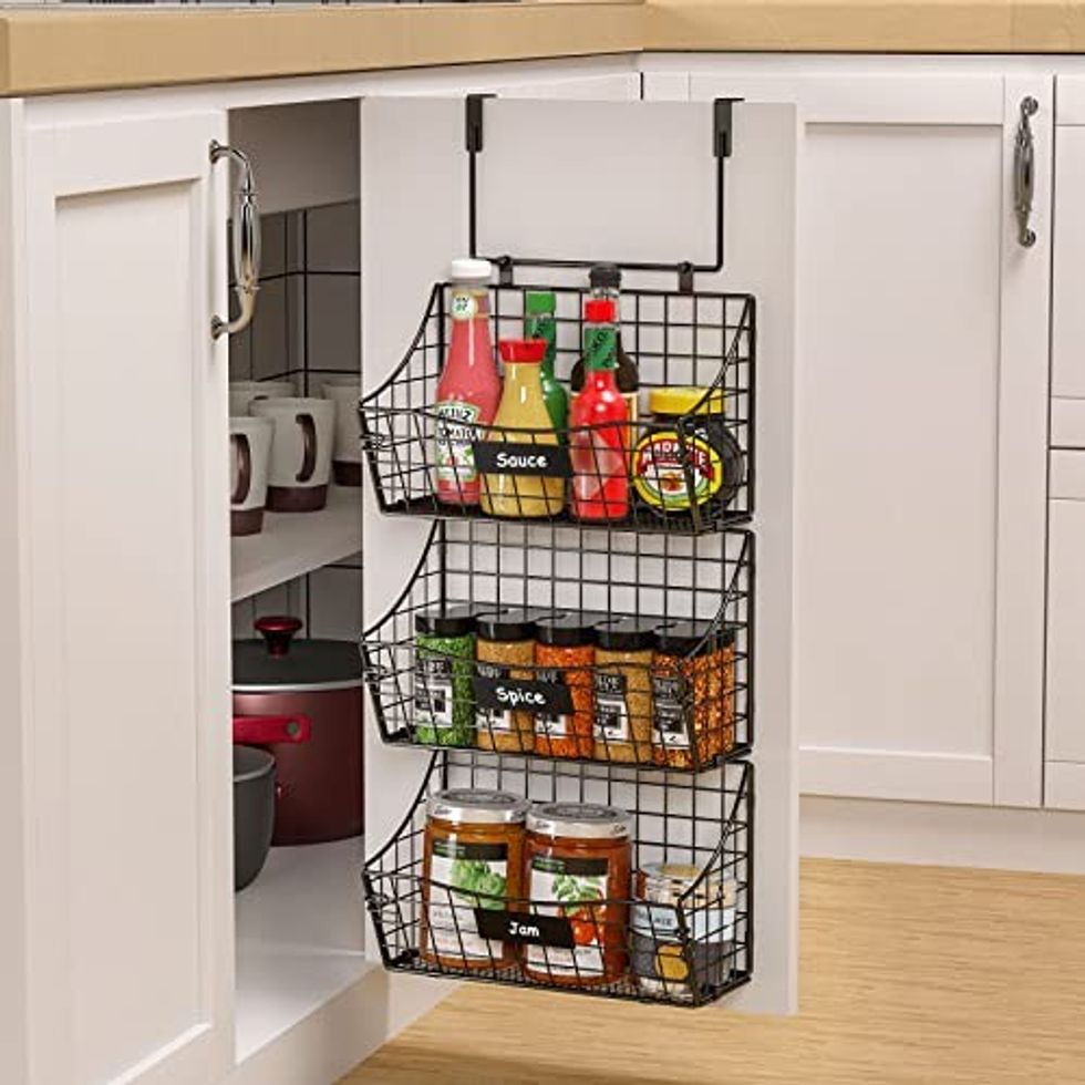 The Hanging Baskets have a layered design, meaning you can use all 3 Baskets together, as a set of 2, or individually. The Baskets can be hung inside or outside cabinet doors, whichever you prefer. Screws are included to mount the Metal Baskets on the wall as an option.