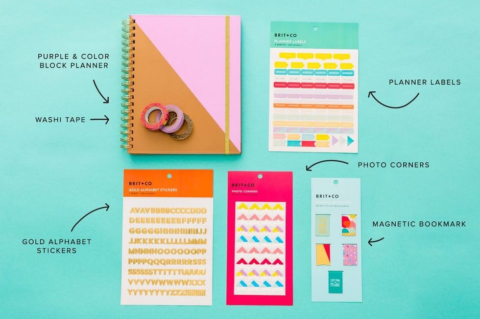 – Brit + Co® Planner Labels ($3): Snag some of these planner labels to help color code birthdays, doctor appointments, meetings, coffee dates, yoga classes, study halls…