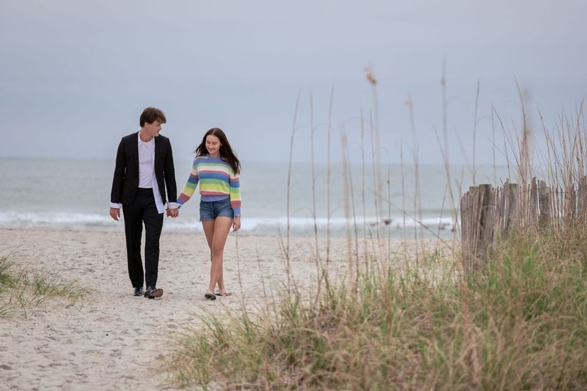 Lola Tung (Belly) and Christopher Briney (Conrad) take a walk on the beach in Wilmington, North Carolina