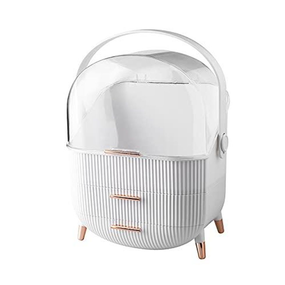 Speaking of makeup organization, it's time to go above and beyond the kaboodle. This cosmetics storage has the coolest looking egg shape and will fit tons of items, from skin care to lipstick.
