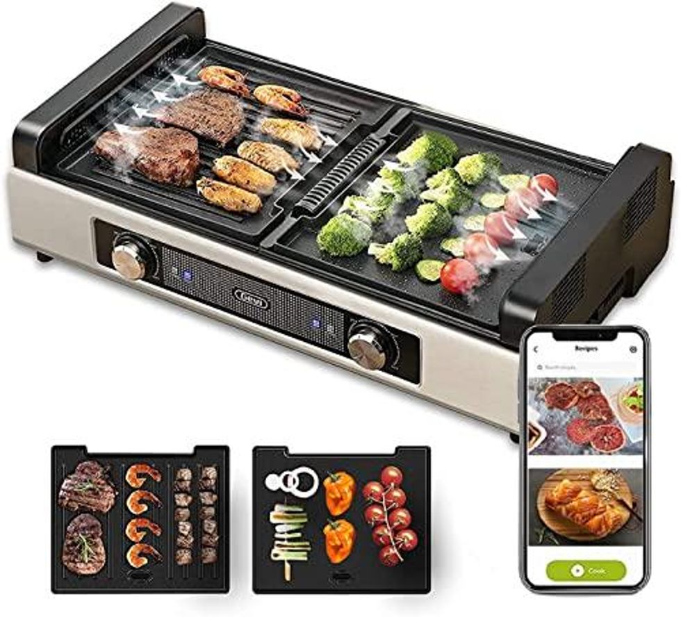 Whether it's too cold outside or you don't have space for a full-sized grill, this indoor version can deliver the same delicious charred flavor sitting right on your countertop. Dual adjustable heating plates let you cook two different ingredients at the same time, and they're even non-stick — so there's no need to worry about your burger patties getting stuck to the grates.