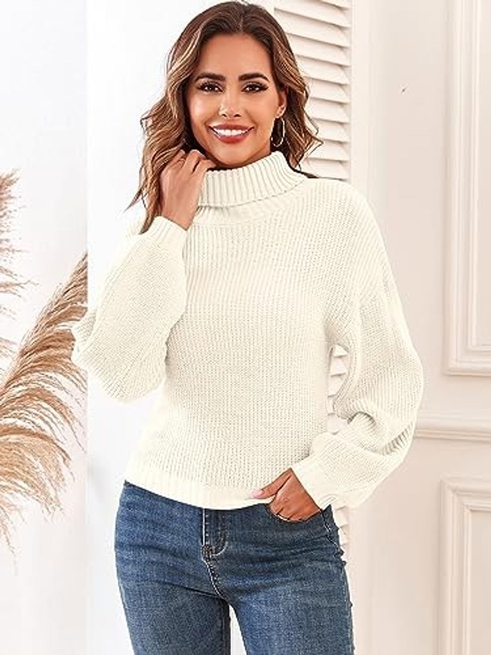 Give your fall wardrobe a flirty flair with this cropped sweater. The turtleneck design is perfect for pairing with a classic updo and your favorite high-waisted bottoms. It's made from high-quality knit material and comes in over 40 color options.