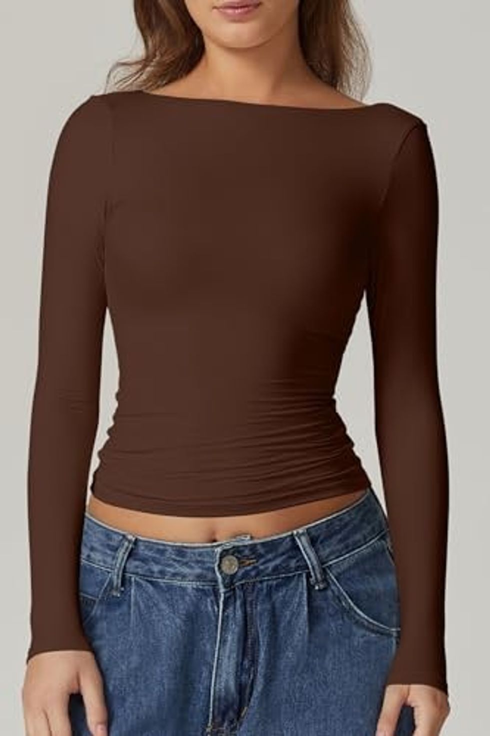 Pieces like this double-lined top are absolutely essential for ensuring you never run out of outfit options. It has a basic appearance in the front with a flirty open-back design. You can easily cover up with a jacket on a cold day.