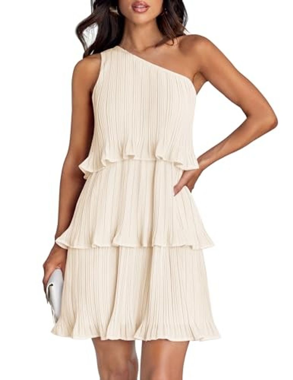 You want a fabulous, flirty, fun dress made for the sun, which is why you'll want this tiered, one-shoulder dress. The tiers on this dress all have their own independent movement, and it's just such a fun and swirly thing to put on that you'll wonder if it's possible to wear it every day of summer vacation.