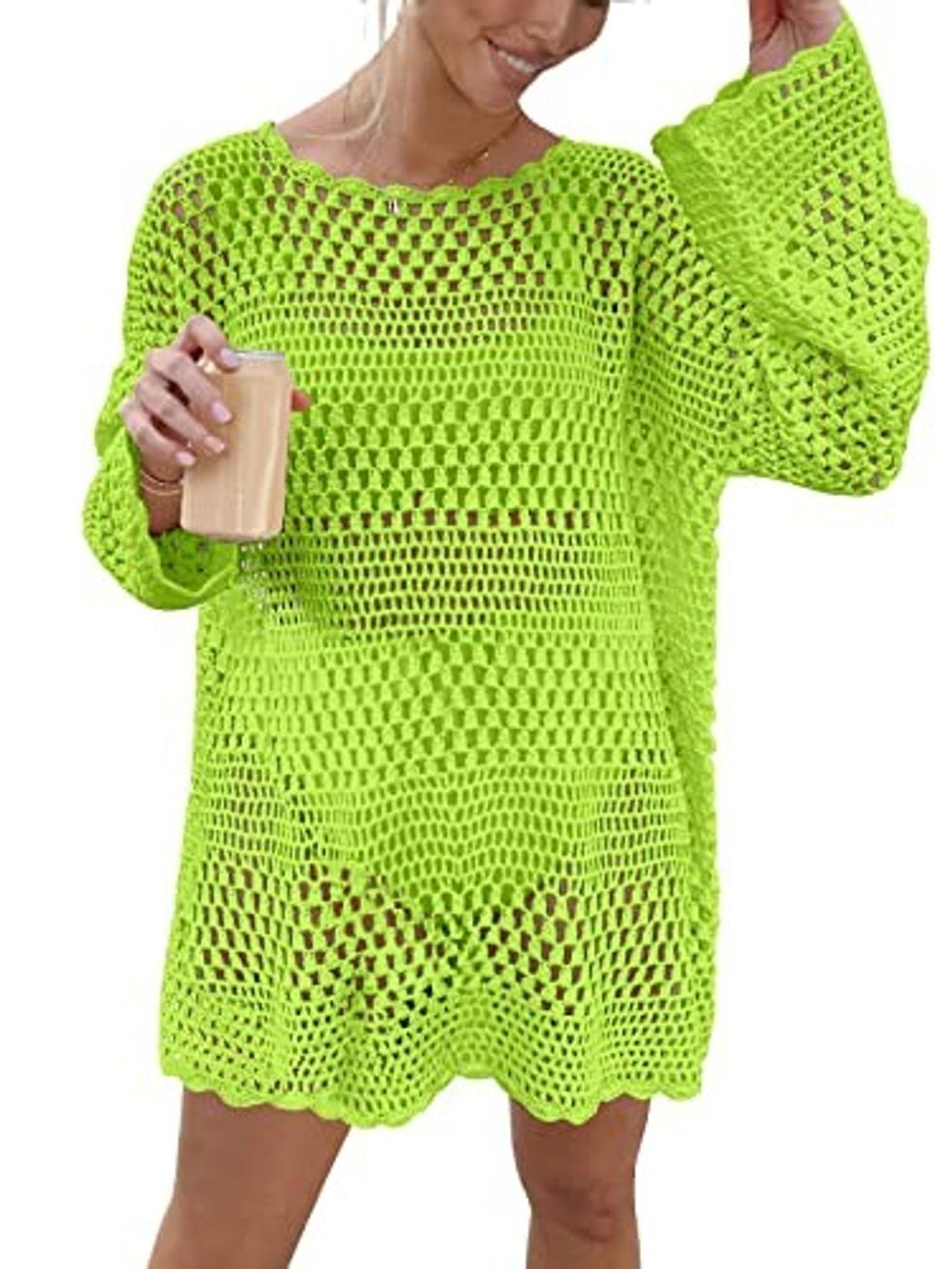 A maxi crochet dress that will help you channel your inner beach Goddess. Features a flattering high slit and is made of stretchy, lightweight fabric.