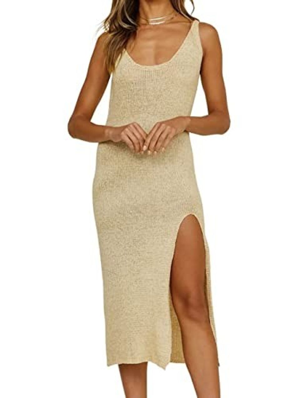 The super comfy knitted dress that you can just throw over your swimming suit and hit the beach. Your holiday wardrobe isn't complete without it. This one is available in multiple colors.