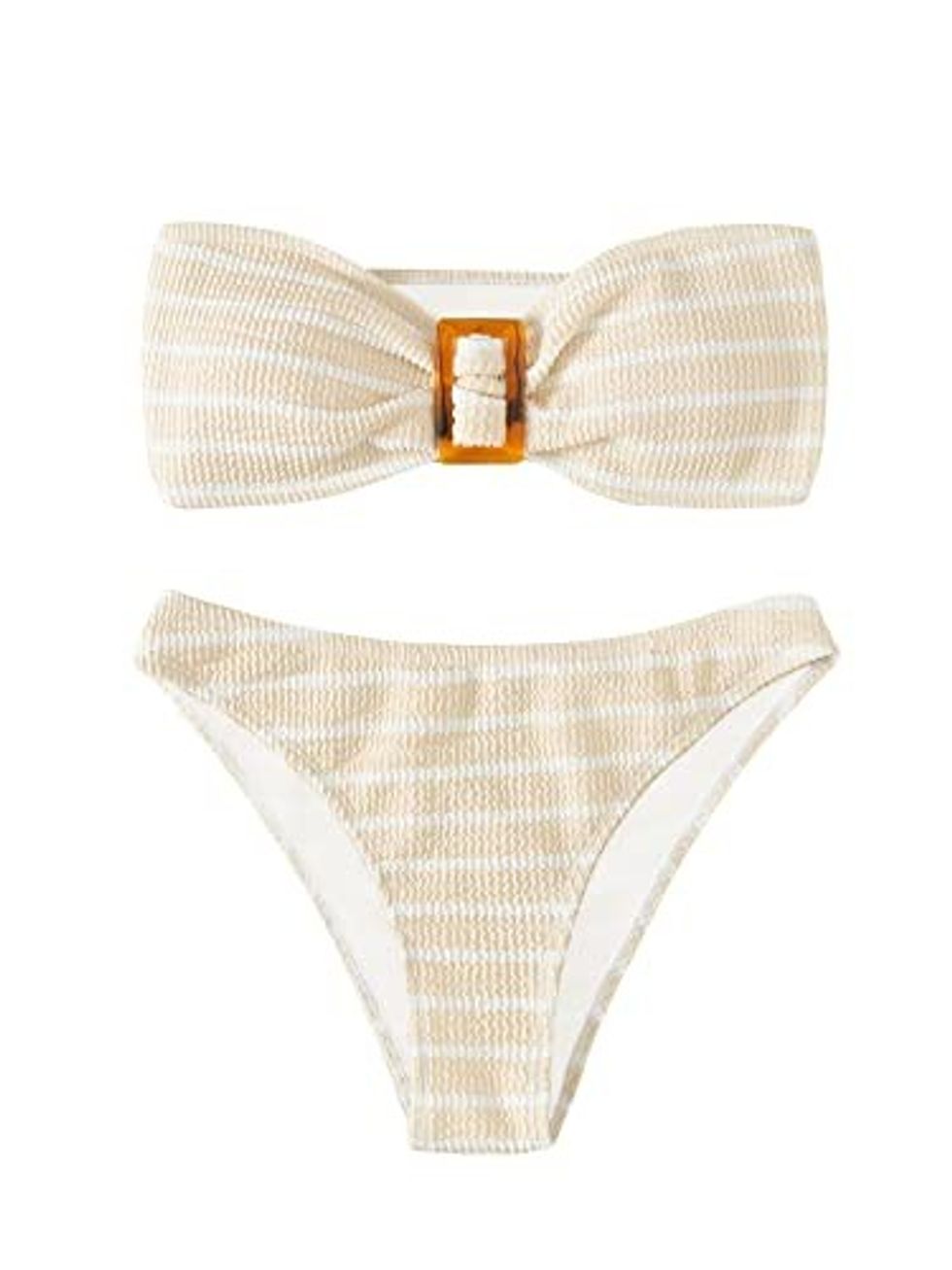 The two piece bikini that will help you make the most out of sunbathing. Consists of a strapless bandeau and a high waisted thong. Looks great in sea blue too.