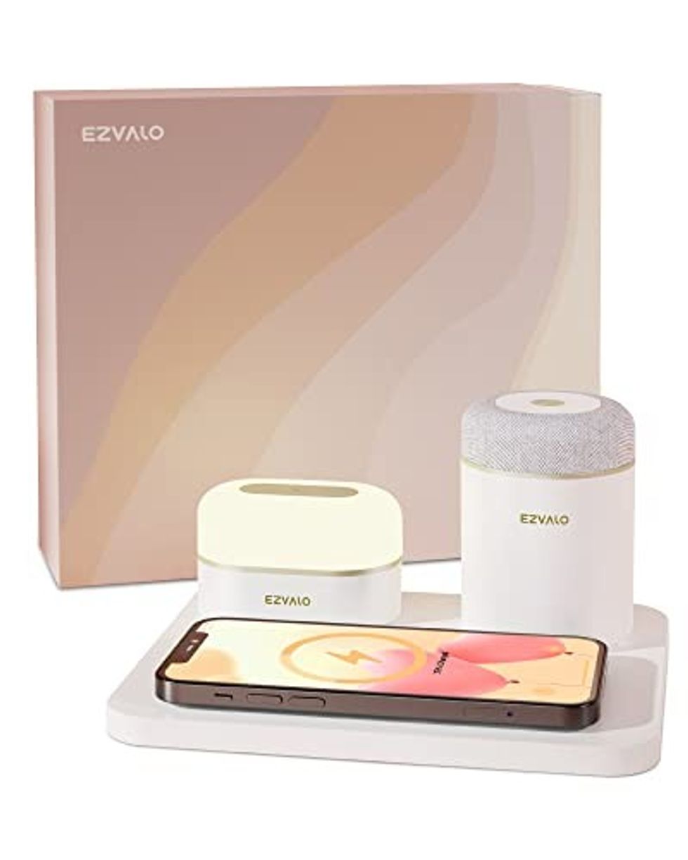 Charger stations have grown so popular that we are flagging our favorite to your attention before it sells out. This EZVALO Birthday Gifts 3-in-1 Charger Station with Wireless Phone Charger is our pick because it has an LED Night Light and Bluetooth Speaker and is a popular bedside all-in-one charging station. It allows for convenient device charging, provides ambient lighting, and features a built-in speaker for music playback.
