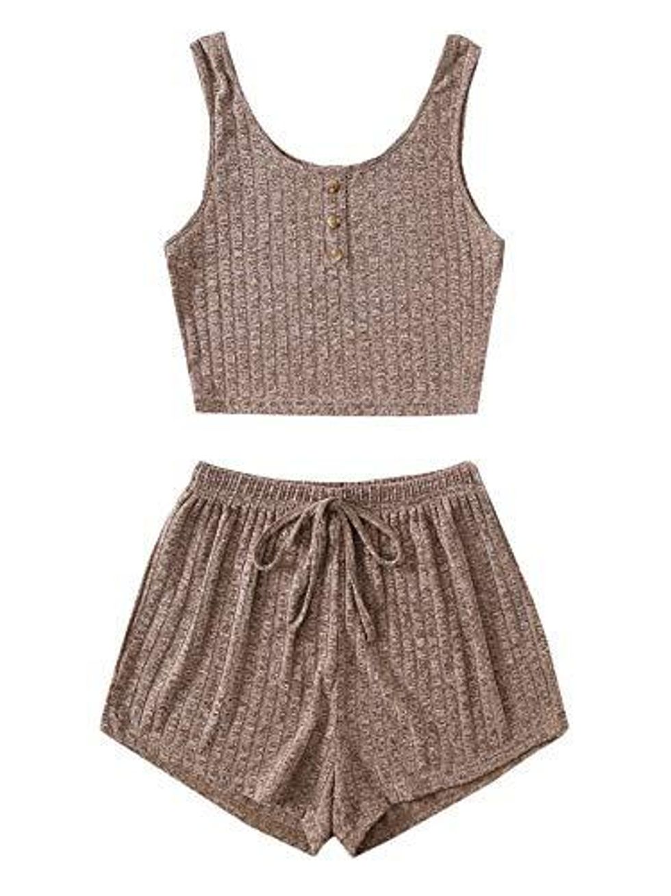 As someone whose body temperature is always running hot, I'm a huge fan of these pajamas. They're made from soft fabric, with a ribbed knitting to give them some comfortable stretch. Plus, the tie-front waistband lets you easily adjust how loose they fit on your hips.