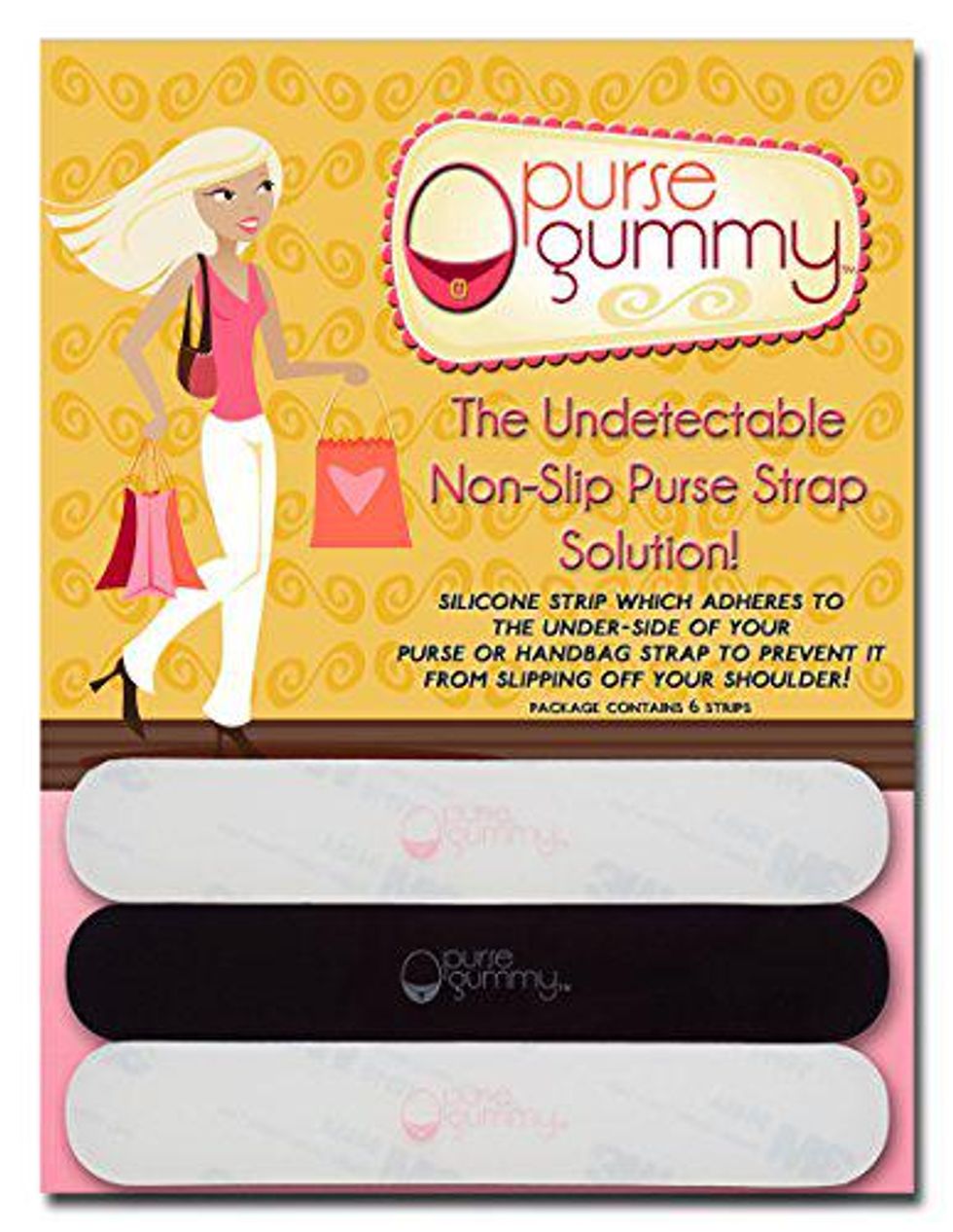 Forget having to slide your purse strap back up to where it needs to be. Get the purse gummy and attach it to the inside of your shoulder strap for a smooth walk without the fear of someone nabbing your bag.