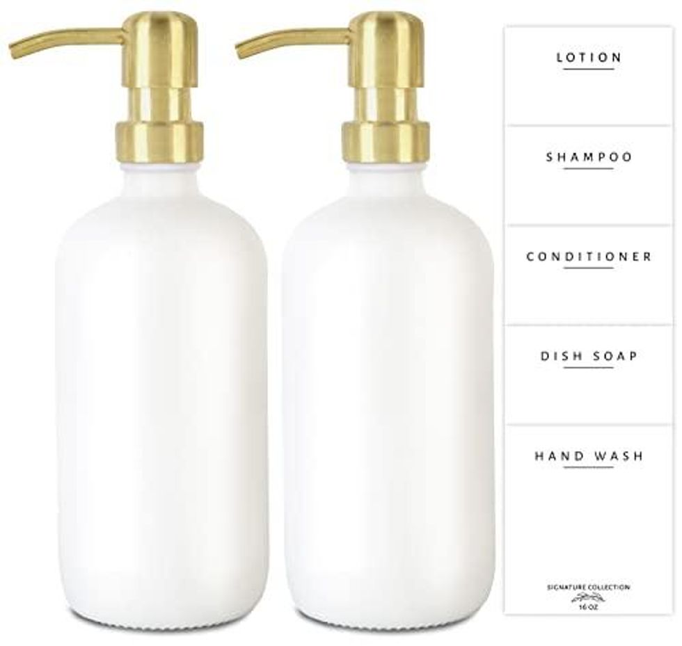 Add a little luxury to your bathroom with these soap bottle dispensers. Their thick glass construction and stainless steel pump make them perfect for shampoo, conditioner, lotion or hand soap.