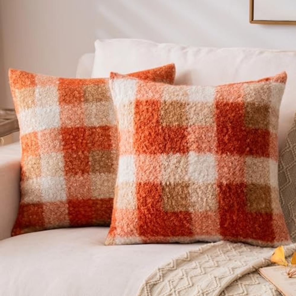 See it on AmazonThese Orange Plaid Pillow Covers Are Made With Boucle