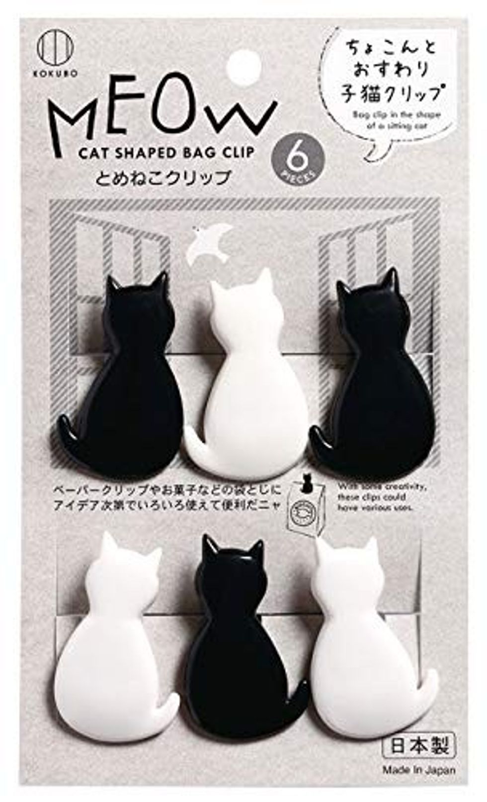 What a fun little stocking stuffer! There are three black and three white cats included in the set. The cat-shaped bag clips are made of resin and stainless steel. Five stars were given by 80% of reviewers.