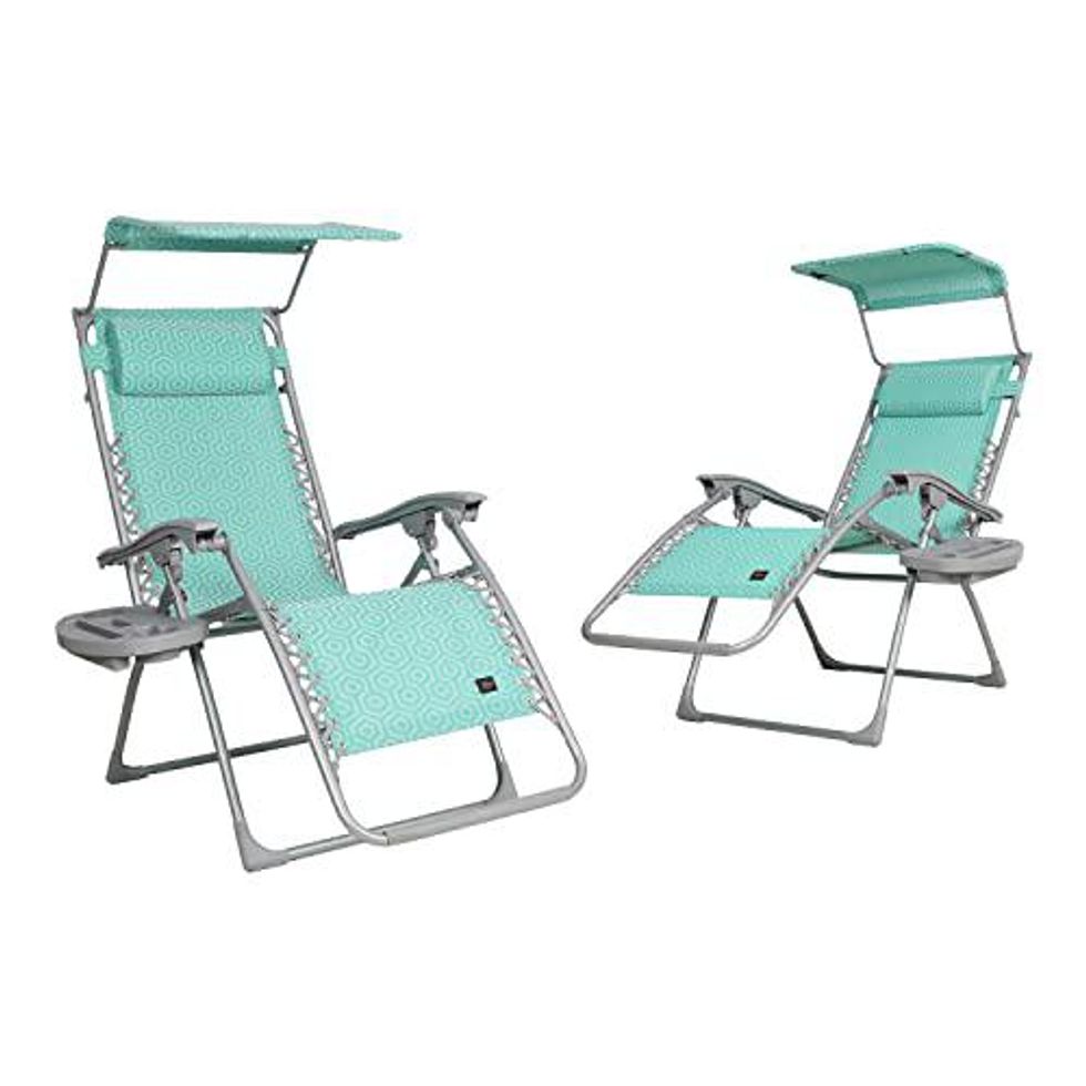 With built-in canopies that give you a little extra shade, it's almost too easy to kick back and relax on these patio chairs. They have a weight limit of up to 300 pounds, and can be reclined backwards when you're trying to take a nap. Plus, the weather-resistant design means you don't have to worry about leaving them outside when it storms.