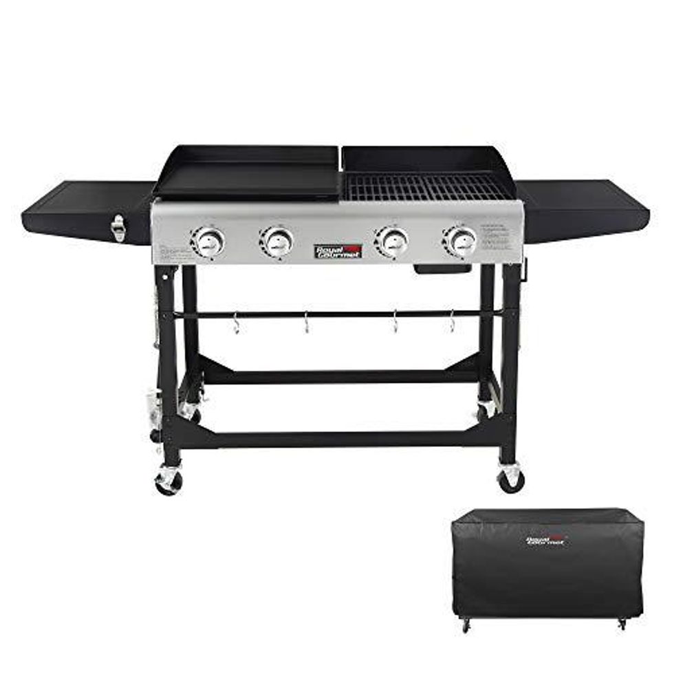 With four powerful burners and almost 300 square inches of cooking space, this flat top grill is a must-have for your next family BBQ. Assembly is quick, only taking about 15 minutes according to most reviewers. And with a collapsible table on either side, you'll have tons of room for prepwork while you're cooking.