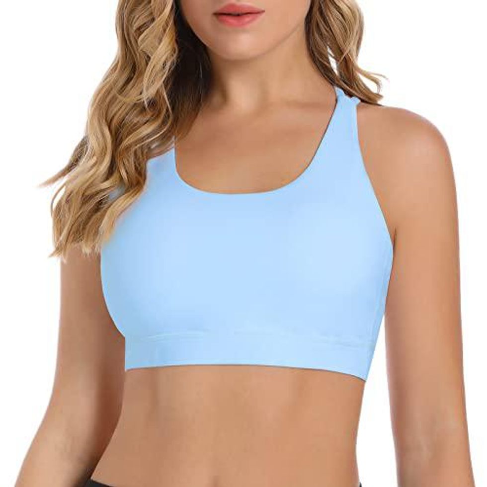 With a strappy criss-cross back that's sure to look cute poking through your workout tank, this sports bra is an absolute steal — especially since it's currently on sale. Removable cups let you adjust how supportive it is, while the moisture-wicking fabric helps keep you dry. Choose from four colors: blue, black, white, or grey.