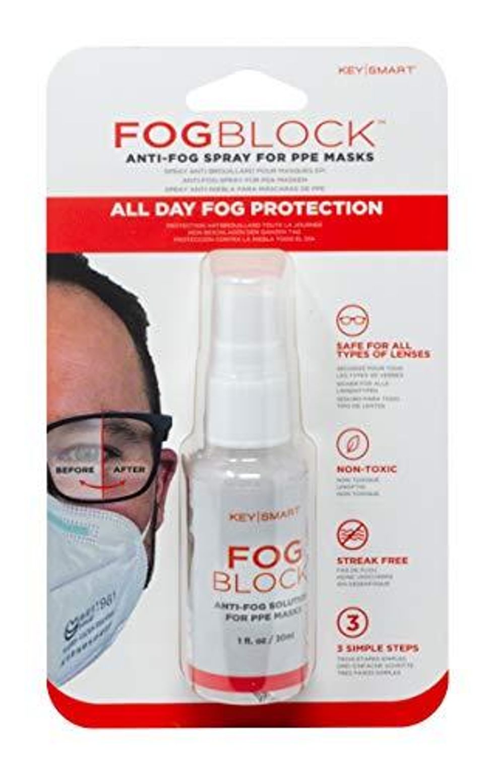 Do you work with a mask on or have an issue with sight while walking inside from the cold outdoors? A quick spritz on your glasses with the fog block spray will keep them from hazing over so you can always see with clarity.