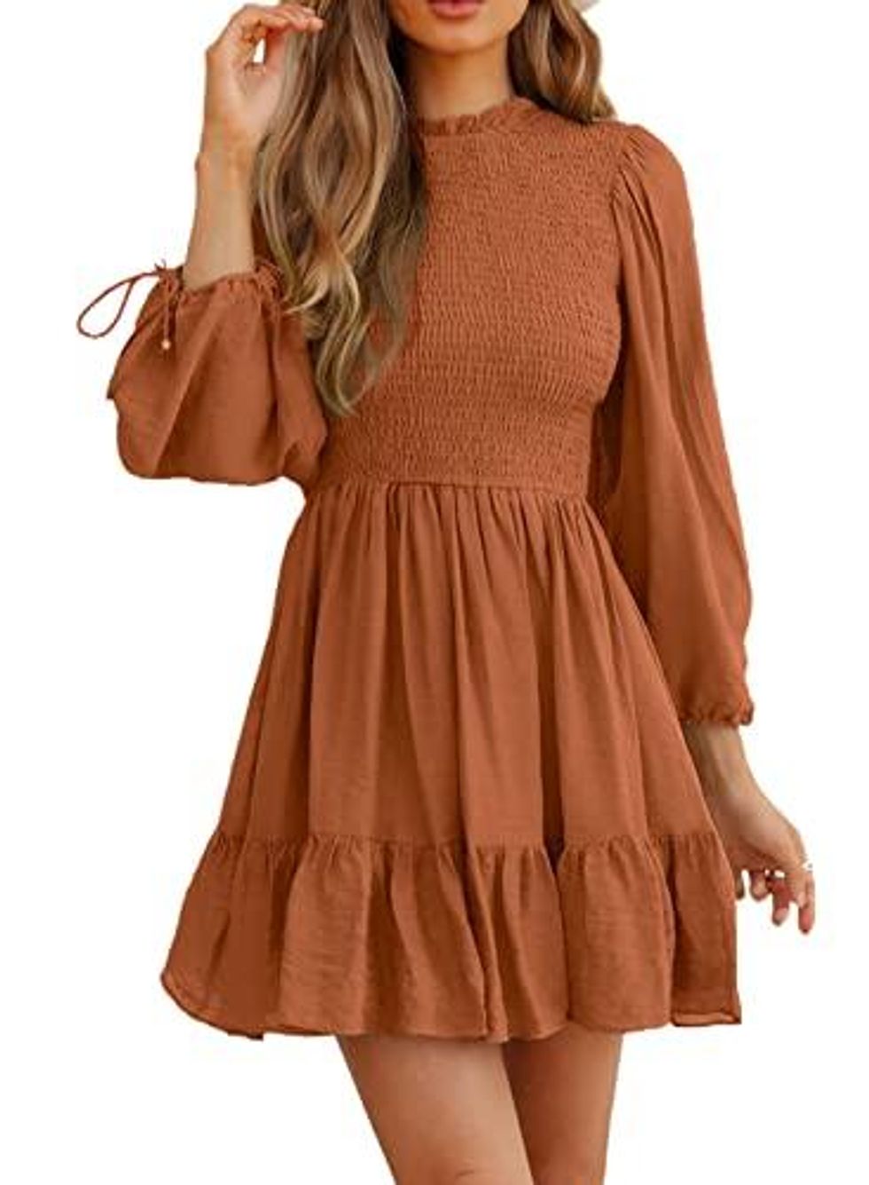 See it on AmazonSmocked Long Sleeve Ruffle Trim Dress