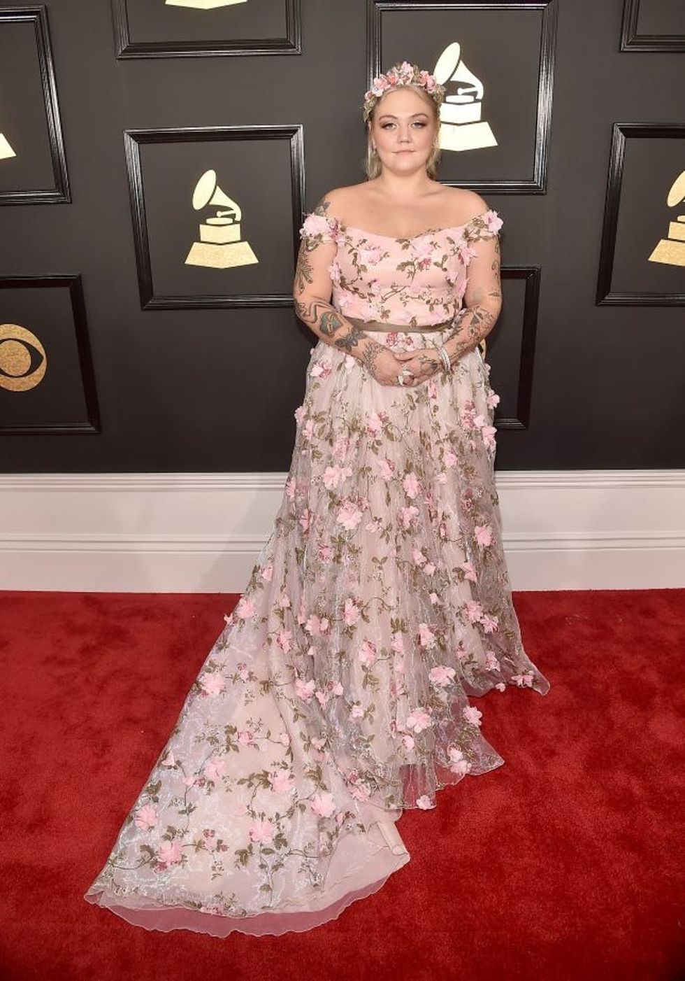10. Elle King: Elle King got uber-girly in a pretty-in-pink floral frock complete with a festival-style flower crown that has us longing for spring. (Photo via Alberto E. Rodriguez/Getty)