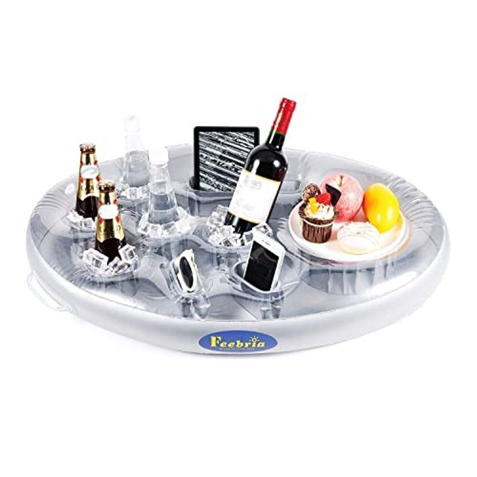 Elevate your pool or lake day with this inflatable drink holder that provides ample space for your drinks, snacks, and even a Bluetooth speaker. With nine holes, it has all the room you need, as attested by a satisfied 5-star reviewer.