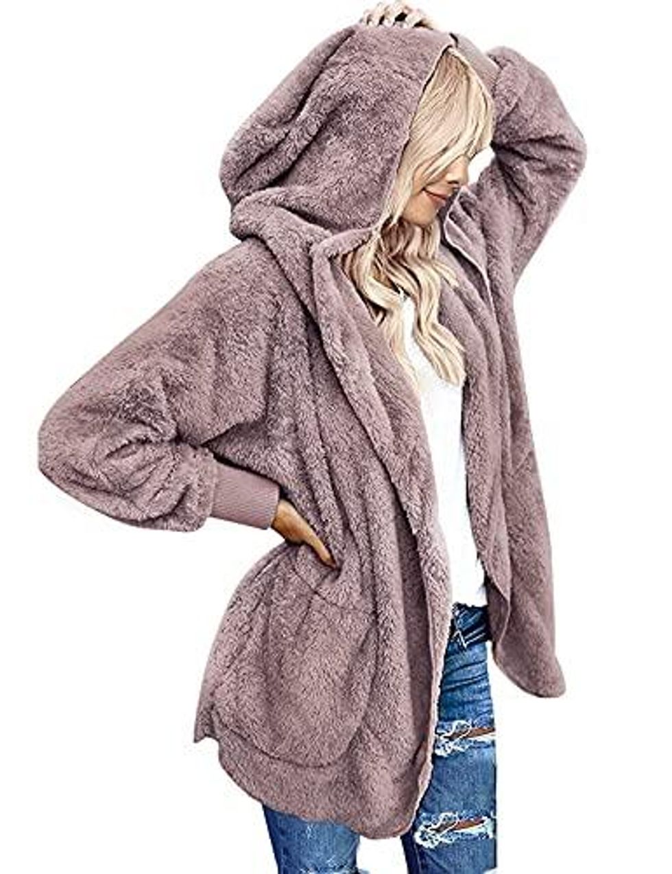 Maximalism is definitely not dead, and you'll see it in tons of coats and jackets that offer MORE. A perfect example is this teddy bear coat, which is super long and super fluffy.
