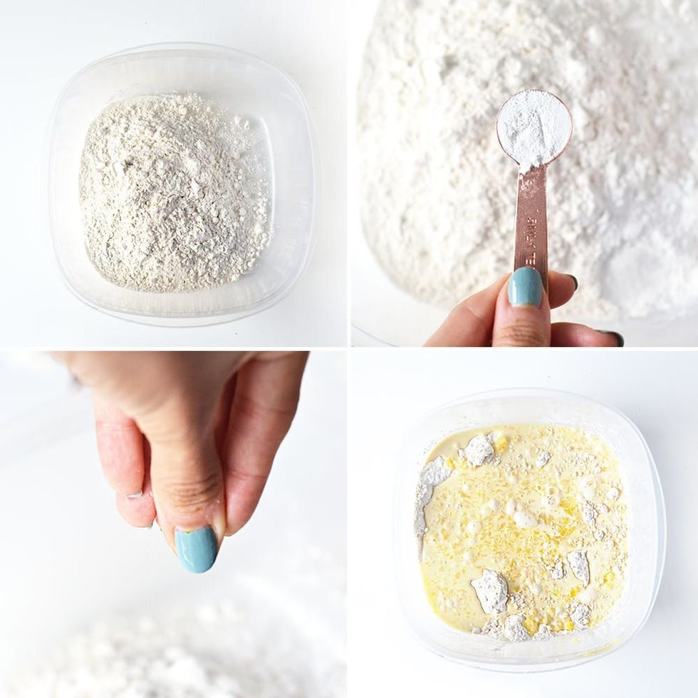 2. In another large container, mix the flour, salt, and baking powder together until completely combined.