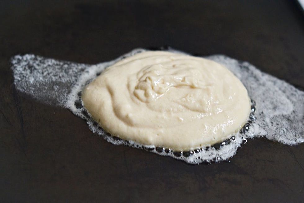 4. Over medium-high heat, melt butter on a skillet and carefully pour the batter. Let the pancake cook for two to three minutes, or until you start to see bubbles pop.
