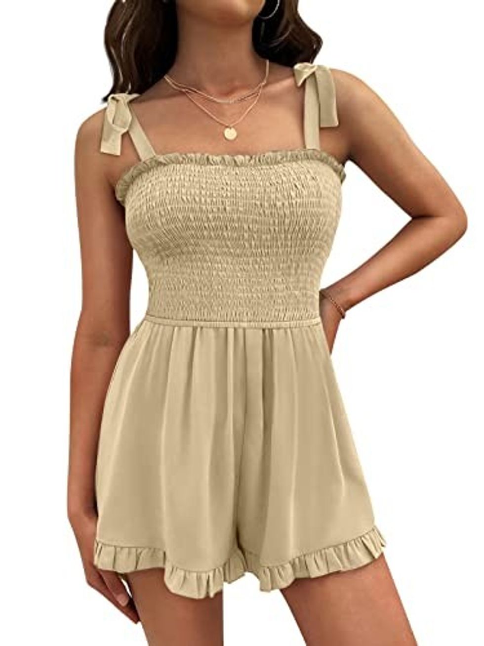 One style you're going to see a ton this summer is smocked tops, and once you try one on you'll understand. They're super flattering and show off all your curves. Try it out with this adorable smocked top romper.