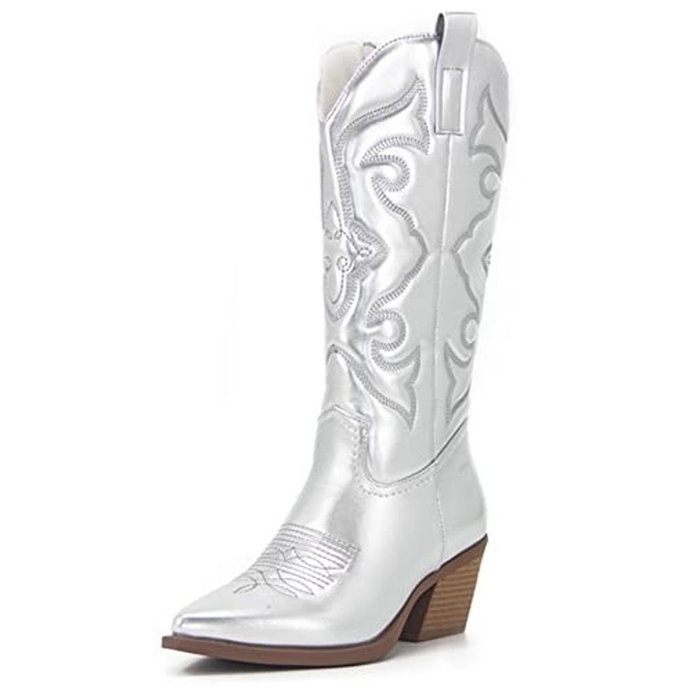 Combine the Western boot trend with the metallic trend, and what do you get? 100% adorable. Tuck your favorite jeans into these metallic boots or pair them with a maxi skirt to put a little extra pep in your step. Just be prepared for everyone on the street to stop and compliment you, of course.