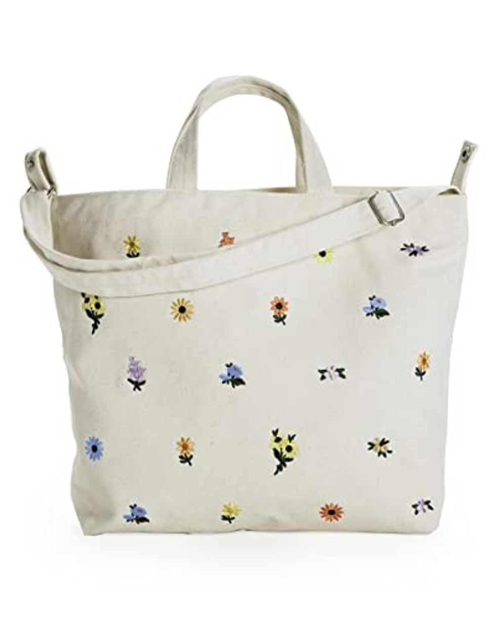 Shop in style with this amazing BAGGU canvas tote. It's big and roomy in a way that can hold a small errand load with ease. And I love the dainty flower details.