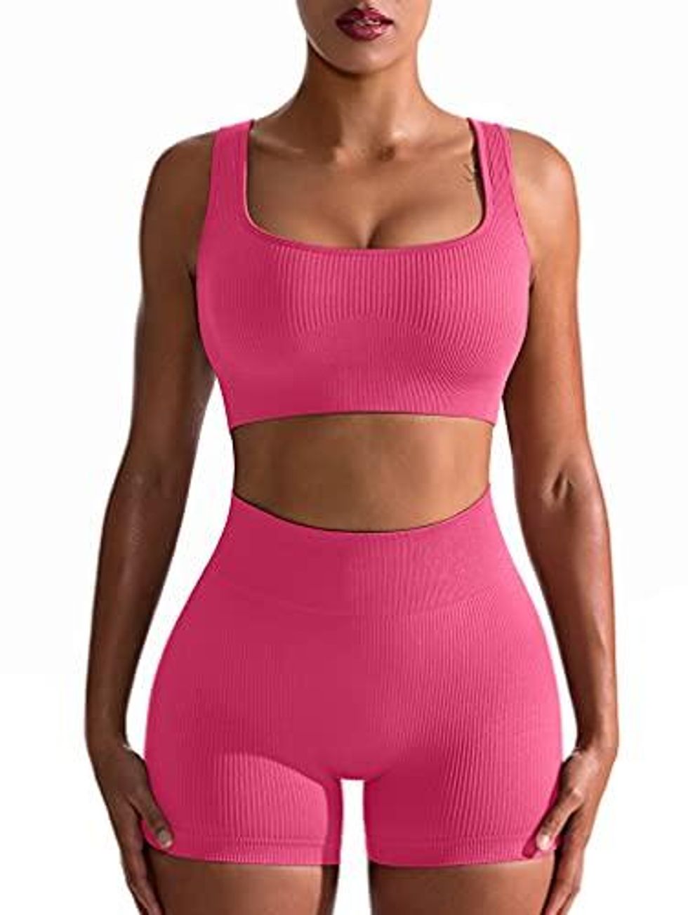Confidence is an understatement when talking about how this seamless workout set will make you feel! The moisture-wicking fabric will keep you dry and comfortable, while the purposeful design will help you stay lifted, tucked, and tight.