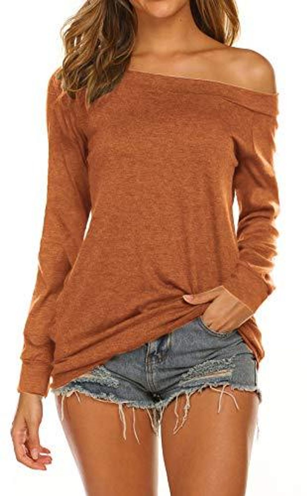 This Boat Neck Long Sleeve gives off a warm and inviting look that we all understand, but can't explain. It's not a sweater material, so it can be worn well into the spring, and it comes in 26 color options.