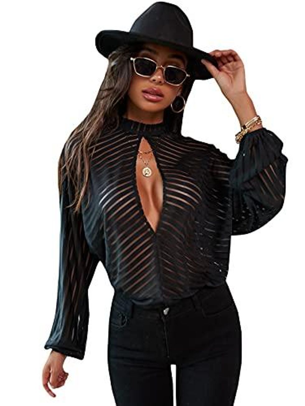 Turn some heads in the best way possible with this top from MANGOPOP. It's sheer enough to show some skin, without being completely see-through. Pair it with your favorite bra and you're ready to slay the day!
