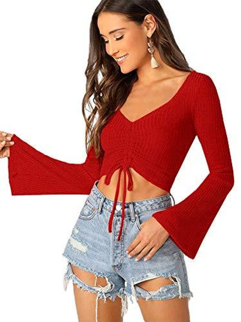 This Drawstring Crop Top is the perfect mixture of retro and grace. We can't get over the bell sleeves, and the ribbed design is adjusted by a drawstring. Pair it with some modern accessories and you'll be a walking fashion statement.