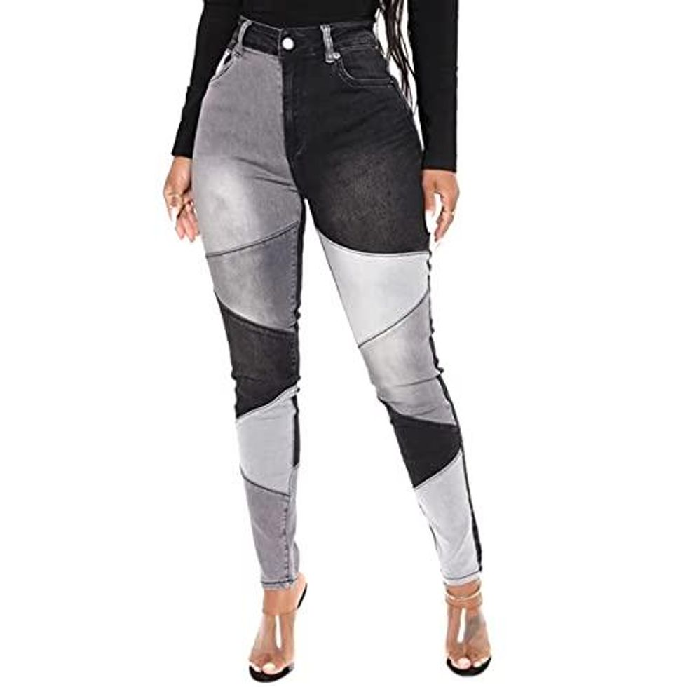 These Patchwork Denim Pants are sure to be center stage everywhere you go. Wear them with a simple top and all eyes will be brought exactly where you want them – your long and lean legs!
