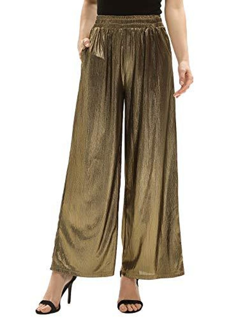 On the other hand if you want to go big, nothing will beat these flowing wide leg pants that come in shining metallic fabrics. You'll immediately be the center of attention.
