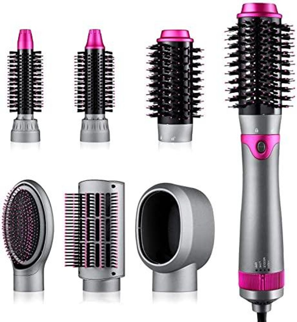 This 6-in-1 Hair Dryer Styling Kit that comes with six interchangeable brush attachments that make straightening, curling, volume, and scalp massage a breeze. You can blow-dry, style your way to different hair lengths, and create different hairstyles.
