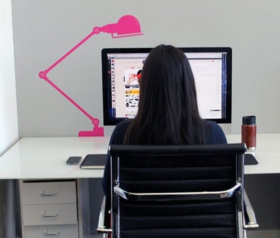 These adorable Workshop Lamps ($22) totally remind us of Wall-E. Each Blik decal set comes with simple instructions, but the quick how-to is: Use the Blik decal tool to secure the decal onto the application paper. Tape up your plan so you know where you're going. Attach to the wall. Unpeel!