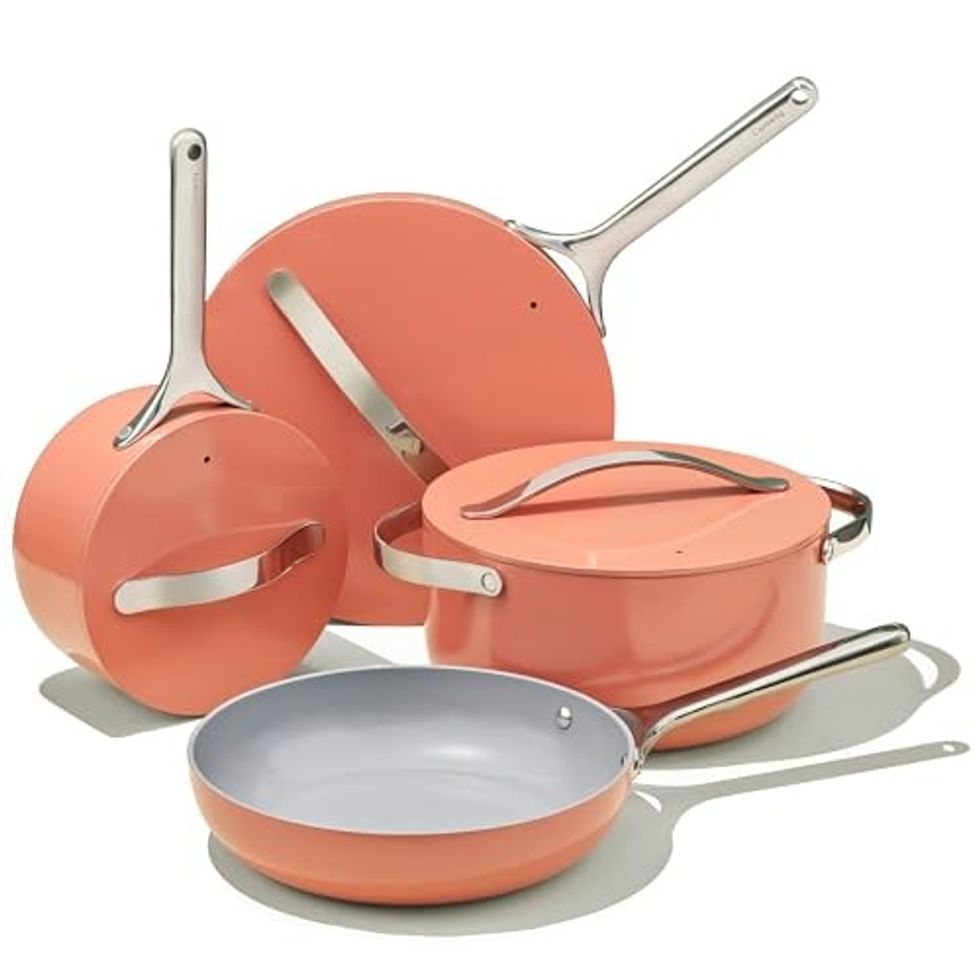 Indulge in the epitome of cookware that combines style with functionality. Seize the opportunity to snag a set at a discounted price. The Caraway Nonstick Ceramic Cookware Set includes 12 pieces, including pots, pans, lids, and kitchen storage, all meticulously designed to be non-toxic, PTFE & PFOA free.