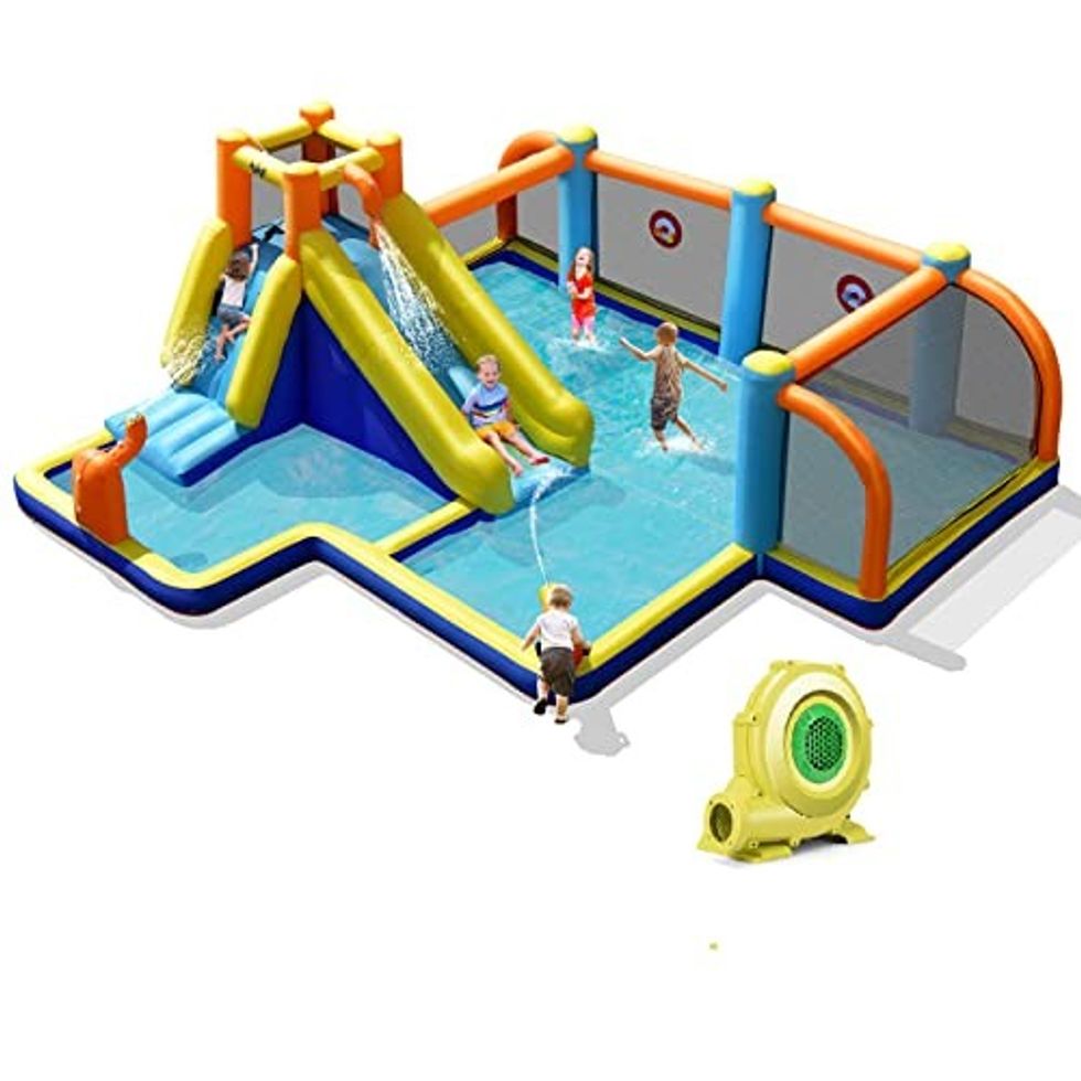 If you've got the space, then this will bring the wow factor to your backyard. Your kids will have endless fun in this inflatable play zone. It's got a giant water slide with two soccer goals. We need it!
