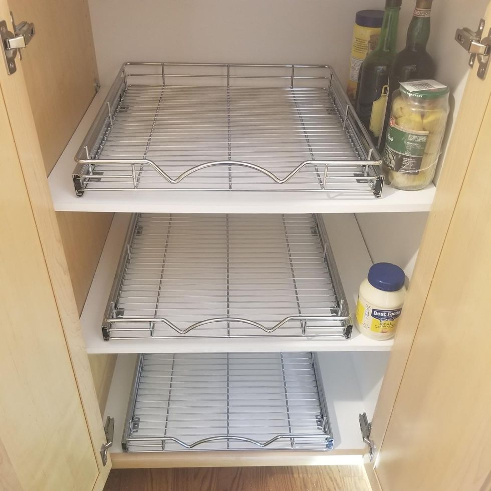 Having trouble reaching the stuff all the way in the back of your cabinets? With this slide-out drawer it's easier than ever. Installation only took me a few quick minutes using a simple screwdriver — and with five sizes to choose from, there shouldn't be any problem finding one that'll fit your cabinets.