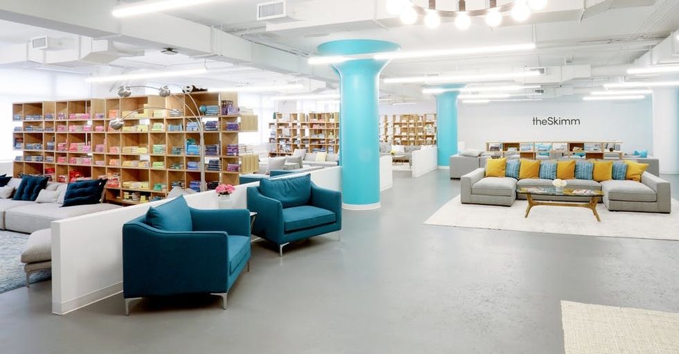 Working with a large, open footprint, “the challenge for us was converting the huge space into something that felt familiar and inviting — like the living room where theSkimm started,” notes Zakin.