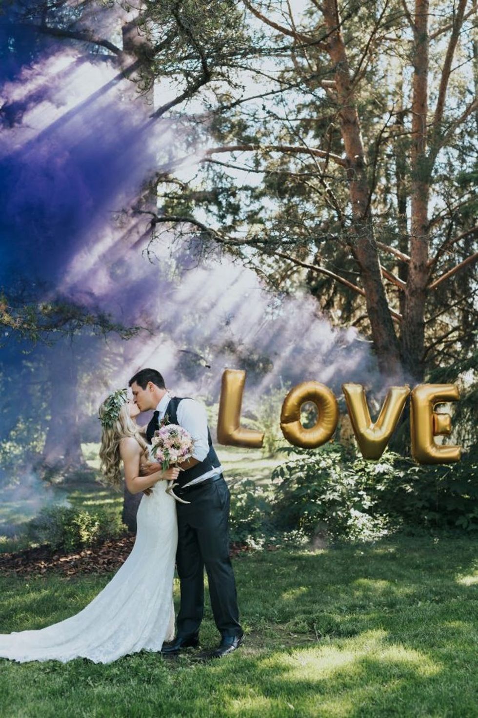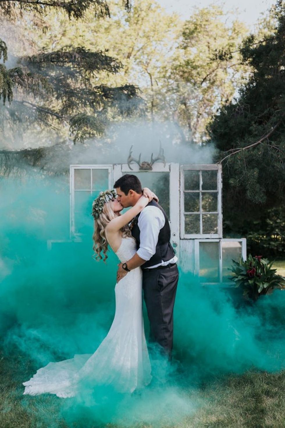 Can a wedding get any more whimsical than puffs of colorful smoke swirling around the lovebirds? We think not.