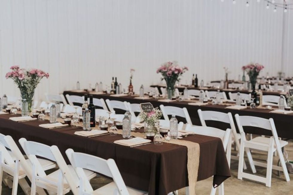 The white chairs and pops of pink florals totally brought the chic factor to this earthy reception — proving how lovely mixing different decor styles can be.