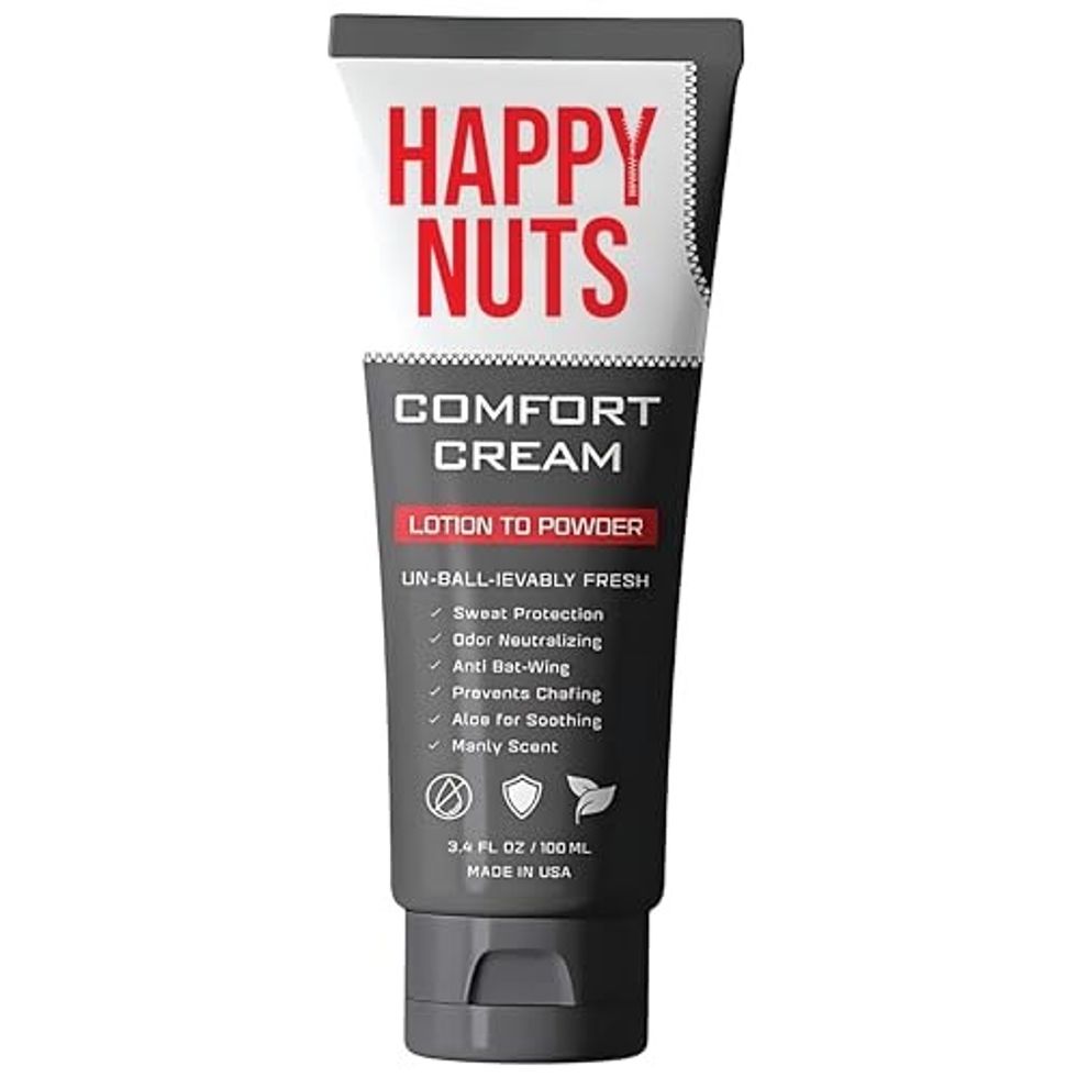 ...While you’re down there, you might as well make sure you’re feeling fresh and smelling just as good, too. Happy Nuts makes a deodorant for men’s “jewels” that starts off as a cream and turns into powder. It’s an anti-chafing formula that controls odor and keeps everything down there dry, so say goodbye to sweaty discomfort this summer. Oh, you’re really going to thank us for this one.